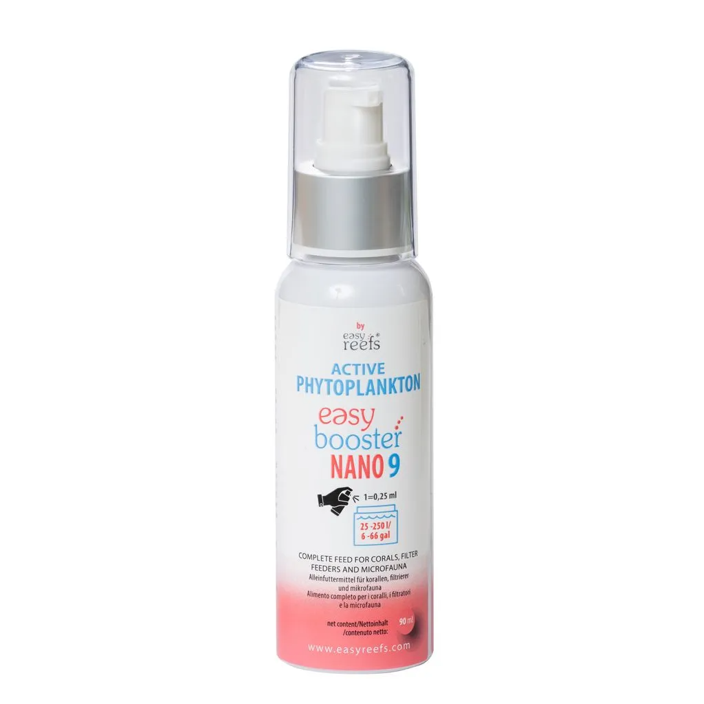 Easy Reefs EasyBooster Nano ist ein konzentriertes, flüssiges Phytoplanktonpräparat zur effektiven Ernährung von filtrierenden Organismen und Mikroorganismen in Meerwasseraquarien. Es wird in sauberen und praktischen Einzeldosis-Ampullen angeboten und ist sofort einsatzbereit. Seine Formel kombiniert vier sorgfältig ausgewählte, sich ergänzende marine Mikroalgen für ein vollständiges und stabiles Nährstoffprofil. EasyBooster Nano fördert die Vitalität von Korallen, Wirbellosen, nützlichen Bakterien und Zooplankton und trägt gleichzeitig zum biologischen Gleichgewicht im Aquarium bei. Dank seiner Nano-Formel ermöglicht es eine präzise Dosierung , vermeidet Abfall und lässt sich auch in kleinen Aquarien problemlos in die tägliche Pflege integrieren.