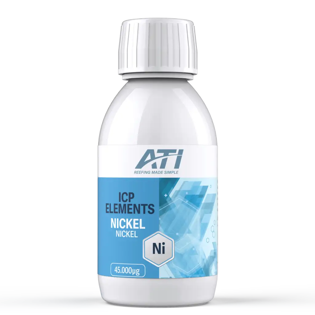 ATI Labs - Nickel ist eine ultrareine Lösung zur Behebung von Nickelmangel in Riffaquarien. Dieses 150-ml-Präparat ATI Laboratories in Deutschland passt perfekt zu einer fein abgestimmten und kontrollierten Wasserchemie. Obwohl Nickel nicht unbedingt essentiell ist, spielt es eine subtile Rolle bei bestimmten enzymatischen Aktivitäten nitrifizierender und stickstofffixierender Bakterien . Diese Flasche enthält 45.000 µg reines Nickel und ermöglicht so eine präzise Anpassung der Werte gemäß den ICP-Empfehlungen. Perfekt für fortgeschrittene Aquarianer, die ihr Aquarium noch weiter optimieren möchten.