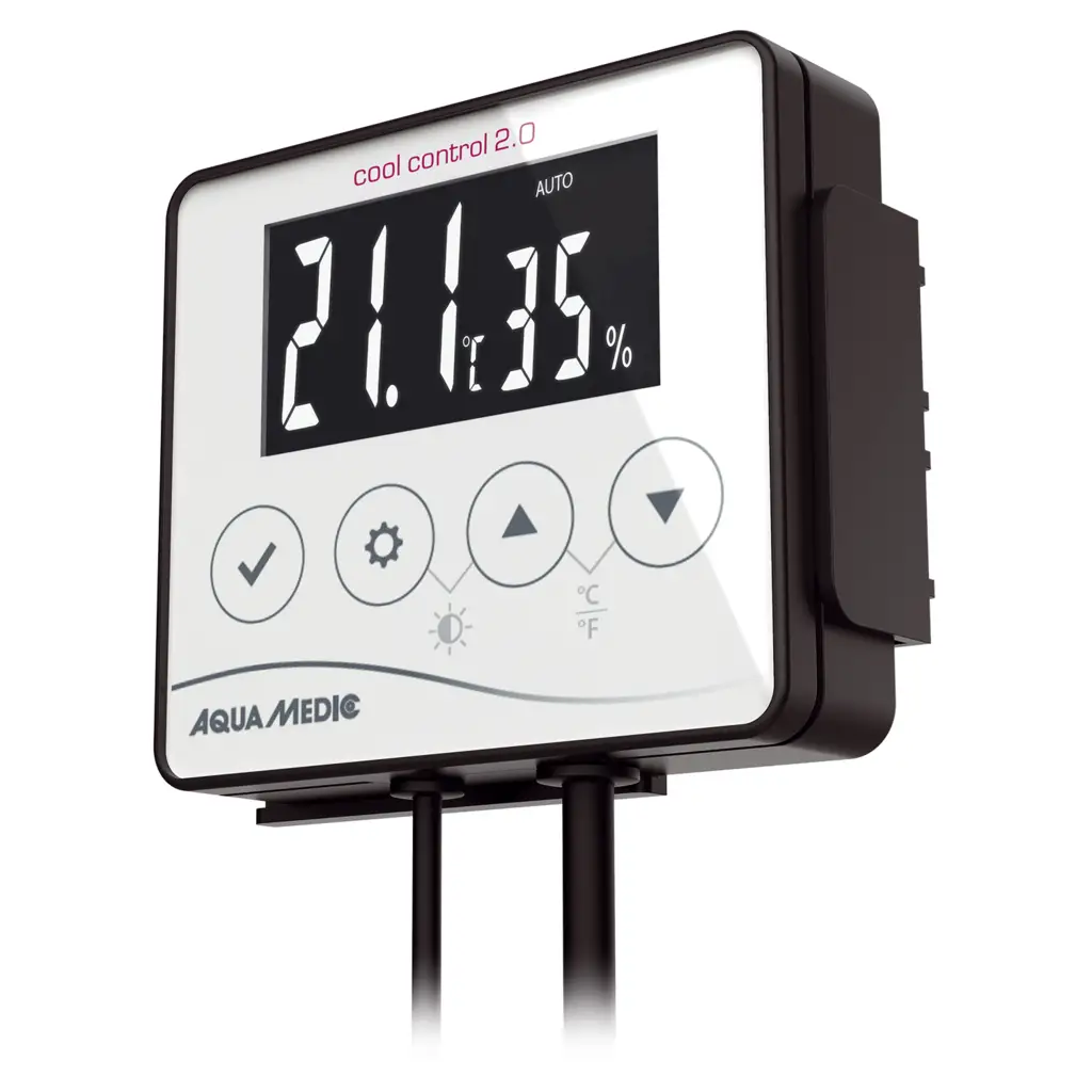 Mit Cool Control 2.0 bietet Aqua Medic ein intelligentes Temperaturregelungssystem für alle, die ihre Wasserumgebung problemlos im Griff haben möchten. Mit diesem Controller können Sie Niederspannungslüfter (12 oder 24 V) mit Standard-Hohlstecker (5,5 x 2,1 mm) steuern, um eine Überhitzung des Beckens zu vermeiden. Das verbesserte LCD-Display zeigt die Wassertemperatur live sowie die aktuelle Lüfterleistung an, einstellbar zwischen 30 und 99 % .