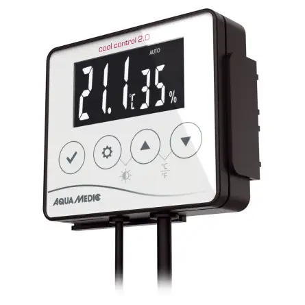 Der cool control von Aqua Medic ist ein digitales Mess- und Regelgerät zur Steuerung von Ventilatoren. Der Temperaturregler „cool control“ mit Touchscreen ermöglicht die Steuerung von 12- oder 24-Volt-Lüftern, die mit einem Hohlstecker (5,5 mm x 2,1 mm) ausgestattet sind . Die Schaltgenauigkeit beträgt 0,5°C.