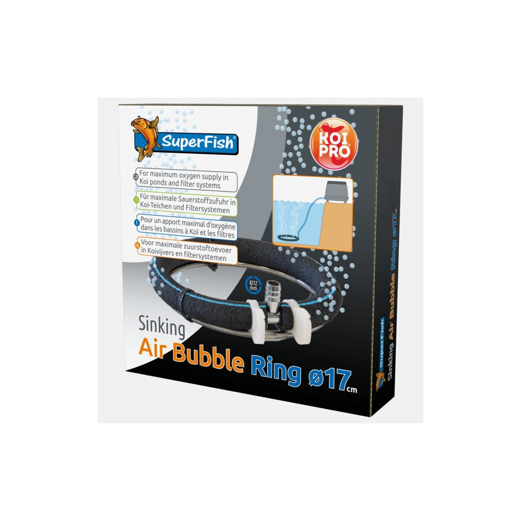 Der sinkende Luftblasenring Ø17 cm von SuperFish ist das perfekte Zubehör, um die Sauerstoffversorgung Ihres Teichs mühelos zu verbessern . Dank seines integrierten porösen Rohrs und seines gewichteten Edelstahlrings bleibt er fest am Wasserboden und verbreitet einen feinen Schauer regelmäßiger Blasen. Er wird besonders für Koiteiche , Quarantänebecken , Filtersysteme oder sogar schwimmende Medienkammern empfohlen. Er lässt sich einfach an einen 8–12 mm Luftschlauch anschließen und funktioniert problemlos mit den meisten Luftpumpen auf dem Markt. Robust, diskret und effizient ist er das ideale Werkzeug, um das Wasser gut mit Sauerstoff zu versorgen und Ihre Fische in Topform zu halten.