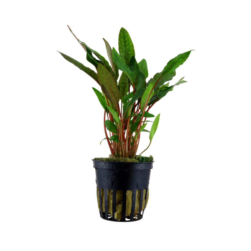 Cryptocoryne beckettii „Petchii“ ist eine asiatische Sorte mit einem wilden und edlen Aussehen, die sich perfekt dazu eignet, der Vorderseite oder Mitte des Aquariums ein natürliches und strukturiertes Aussehen zu verleihen. Diese aus Sri Lanka stammende Rosettenpflanze zeichnet sich durch ihre gewellten olivgrünen Blätter mit einer malvenfarbenen Unterseite aus, die ihr einen verrückten Charme verleiht. Es wächst langsam, bildet aber schnell schöne, dicke Büschel . Sie ist sehr tolerant und benötigt weder intensive Beleuchtung noch die systematische Ergänzung eines CO2-Systems , auch wenn diese Elemente ihr Wachstum fördern. Es passt sich problemlos den Bedingungen im Aquarium an und ist für Anfänger geeignet. Eine ideale Möglichkeit, einen Hauch von Eleganz hinzuzufügen, ohne Ihr Leben zu verkomplizieren.