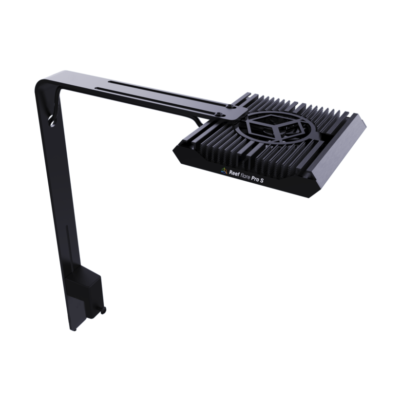 Der Reef Flare Pro S Arm ist ein Kit zum Anbringen von Reef Flare-Leuchten der Größe S direkt an einem Arm am Ende des Aquariums. Es besteht aus einem einzigen Stück Aluminium und bietet einen soliden und stabilen Griff. Die Stütze ist in beiden Achsen stufenlos verstellbar.