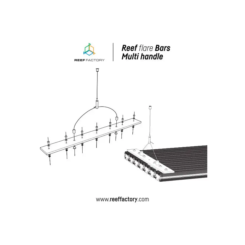 Bei den Reef Flare Bars Multi-Handle handelt es sich um einen Satz Montageschienen, mit denen bis zu 4 Reef Flare Bar 2 oder bis zu 7 Reef Flare Bar über dem Aquarium aufgehängt werden können, wodurch die Farben der Korallen noch besser zur Geltung kommen.