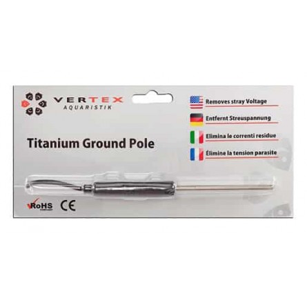 Erdungssonde zum Schutz Ihres Meerwasseraquariums vor Streuspannungen, die von Pumpen, Heizungen, Kühlern, Beleuchtung und anderen elektrischen Komponenten in Ihrem System ausgehen können. Bei ordnungsgemäßer Installation werden Streuspannungen von Aquariengeräten im Wasser sicher abgeleitet.
