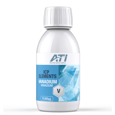 Like all products in ATI 's ICP Elements range, vanadium is made from ultra-pure raw materials and tested according to the strictest European Union standards. Its label displays the total amount of element contained, for maximum transparency . In addition to its reliability, the ATI classification system makes it easy to quickly determine whether this product is intended for beginner, advanced or expert use. Vanadium is classified for advanced users, those who want to fine-tune every detail of their reef ecosystem.