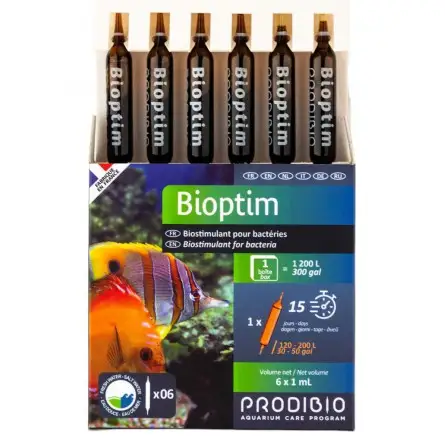 Bioptim by Prodibio is intended for marine and freshwater bacteria . Based on seaweed extracts, it is an excellent biostimulant that provides microorganisms with the vitamins, trace elements, amino aids and plant surfactants necessary for their proper development and optimal purification activity.