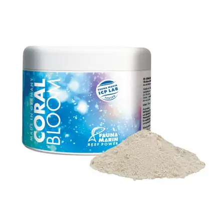 Fauna Marin 's Coral Bloom is an ultra-fine (3-8 microns) natural mineral powder that acts as a true nutrient booster for corals. Composed of 100% natural oolite with no additives, it mixes with liquid foods and remains suspended for hours, making nutrients immediately available to corals and filter feeders. This clever supplement stimulates growth, coloration, and skeletal formation while also contributing to water purification. Coral Bloom is also compatible with all brands of liquid coral food. Usable alone or as a base for homemade preparations, it's the discreet yet powerful ally for any well-fed reef aquarist.