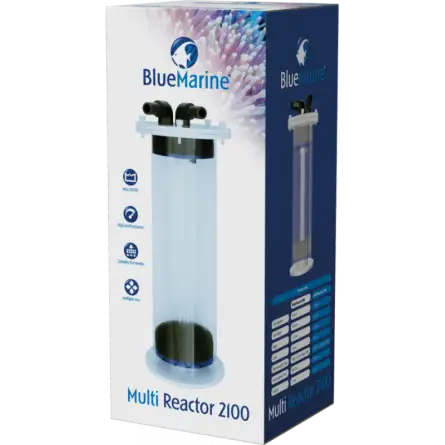 The Blue Marine Multi Reactor 2100 is the ideal reactor for all aquarists who want to offer their aquarium up to 2100 liters a truly efficient and adaptable filtration. Designed to accommodate a wide variety of filter media – resins, carbon, anti-phosphates, bio-media – it boosts the efficiency of your existing filtration system. Thanks to its generous volume of 3.5 liters and its included fine foam, it manages both fine granules and larger media. It connects easily to a dedicated pump or to your current circuit, and the removable cover facilitates maintenance .