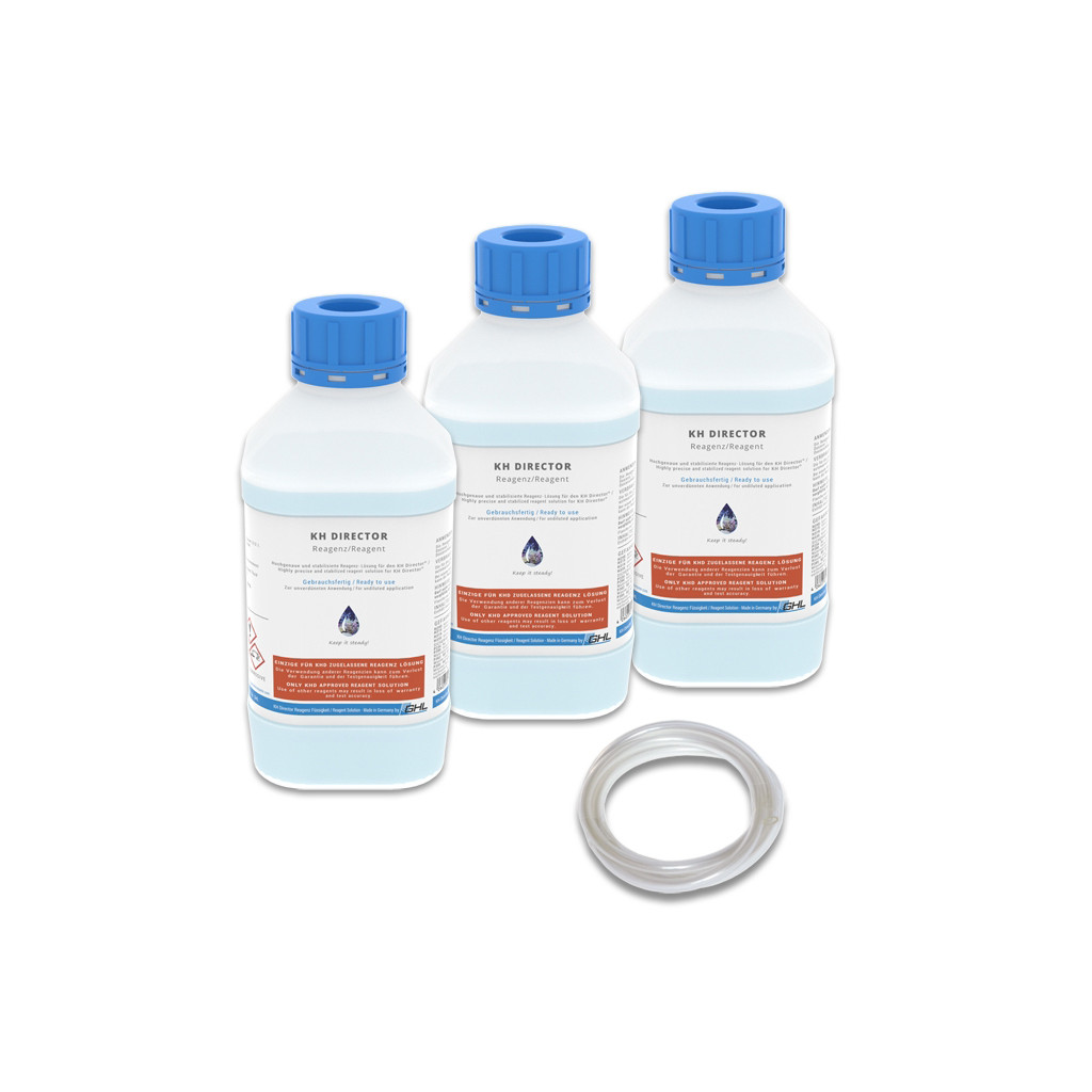 Stabilized and highly accurate reagent solution for KH Director + 70 cm flexible PVC reagent tube.