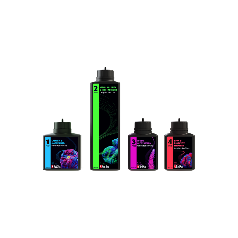 Complete Reef Care divides the 36 Major, Minor and Trace elements into four parts to ensure their stability and bioavailability.With just one weekly Calcium test, Complete Reef Care greatly simplifies managing your aquarium parameters. Doses of all four parts are automatically adjusted based on Calcium test results, eliminating the need for multiple tests and adjustments. This allows aquarists to focus more on observing and enjoying their reef, rather than tedious maintenance.