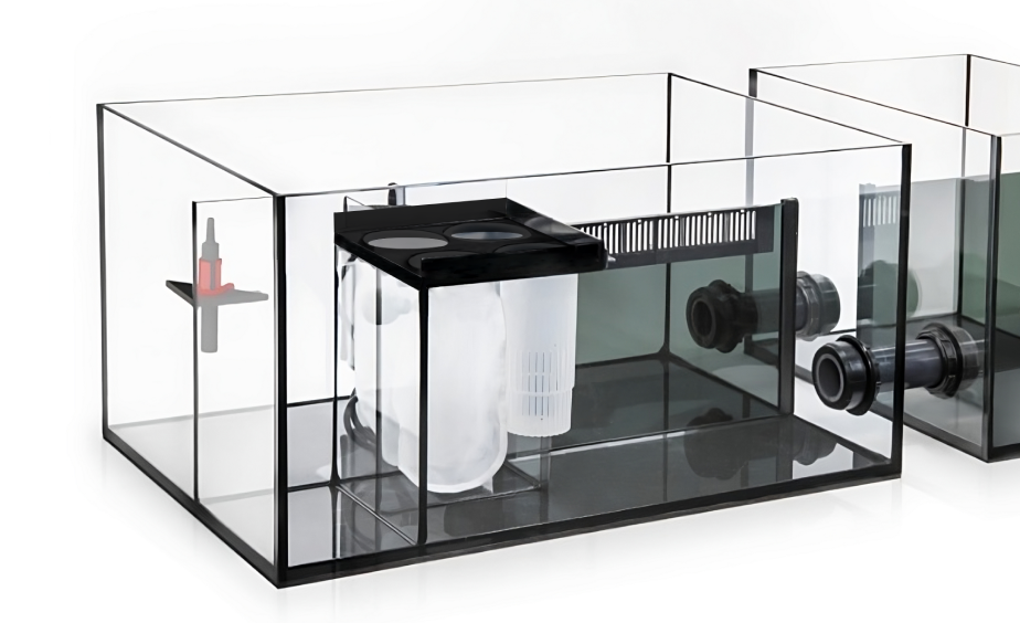 The Reef-Spec sump of the Reefer 1000 G3 was designed to meet the current needs of reef aquarists. With its 205-liter capacity , it offers ample space for organizing your equipment without feeling cramped. It is refugium-ready and ReefMat compatible , providing plenty of room to build a modern and scalable filtration system. Features include a height-adjustable skimmer compartment , micron bags , a removable media cup , and a bubble trap to prevent microbubbles from returning to the main tank. The sump extension can also be used in various ways: as a frag tank, a large refugium, for supplemental filtration, or even as a reservoir for RO or saltwater for water changes. This level of flexibility is particularly valuable in a system of this caliber.