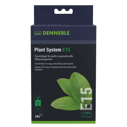 Important to know: Plants can only absorb so-called bivalent iron. Unfortunately, this is not stable in the aquarium, but is quickly oxidized and thus converted to ineffective "brown" trivalent iron. Tap water contains almost no iron. Aquarium plants therefore depend on regular fertilization with iron.iron with effective protection and ensuring its long-term availability for the aquarium plants (deposition effect). E15 is phosphate and nitrate free and therefore does not promote the growth of algae. Special Note: Commercial iron tests often fail to detect chelated iron. These tests then indicate insufficient results, although there is in fact sufficient iron in the aquarium water.