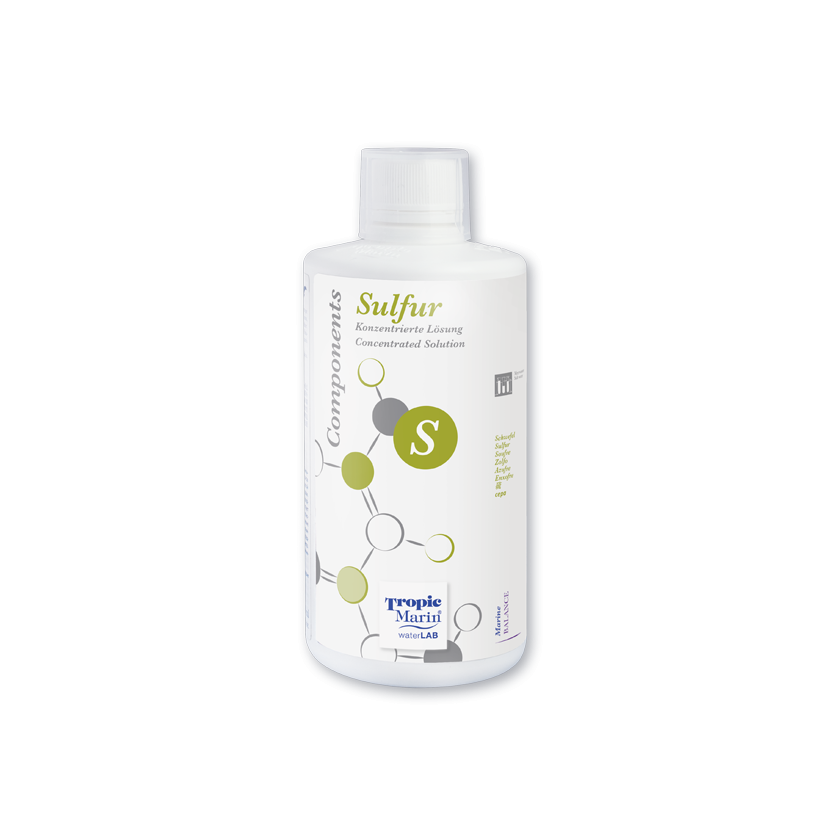 Naturally present in seawater at a concentration of approximately 900 mg/l, sulfur is an essential element for the health of marine organisms. It is incorporated into sulfur amino acids and is involved in many biological functions, particularly in the formation of enzymes. A sulfur deficiency can alter the metabolism of corals and other aquarium inhabitants.