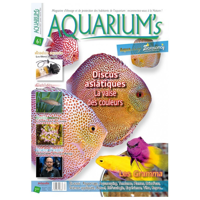 Por lo tanto, en AQUARIUM encontrará lo que le gusta en Zebrasomag y/o AQUAmag, todo ello enriquecido con artículos sobre temas que reúnen los acuarios de agua dulce, de mar y de arrecife. De hecho, la división entre agua dulce y agua de mar no es abrupta, y muchos acuaristas se apasionan por ambas zonas, pasando de una a otra según sus deseos. El objetivo de AQUARIUM es ver lejos y presentarle los acuarios en su conjunto, en torno a un hecho inmutable: ¡el agua!