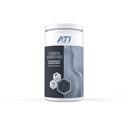 ATI Carbon SuperPure 1000 ml / 500 g es un carbón activado de última generación diseñado para proporcionar una filtración química excepcionalmente eficaz, sin dañar el acuario. Su estructura de alto rendimiento permite la rápida captura de toxinas, contaminantes orgánicos, residuos de medicamentos y sustancias amarillentas , a la vez que preserva el equilibrio del acuario. Gracias a su excepcional pureza y a la mínima liberación de fosfatos, silicatos y metales , el agua se vuelve cristalina y visualmente más vibrante. Extremadamente concentrado, este carbón requiere una cantidad mínima de material para obtener resultados visibles, lo que lo convierte en una solución eficaz, económica y fiable para mantener un agua sana y agradable a diario.