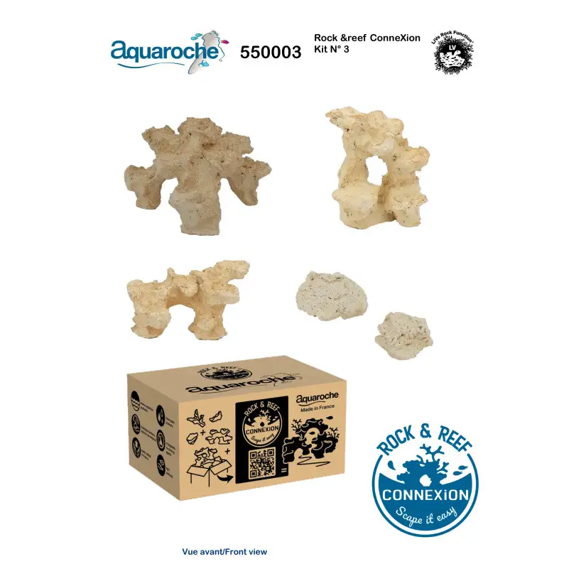 Rock&Reef ConneXion kit 3 es una forma divertida de crear la decoración de su propio acuario. Cada kit se compone de 3 módulos interconectables , 1 piedra redonda y 1 piedra plana que permiten crear una pequeña decoración para un nanoacuario . ¡Simplemente agregue un kit adicional para ampliar la decoración!