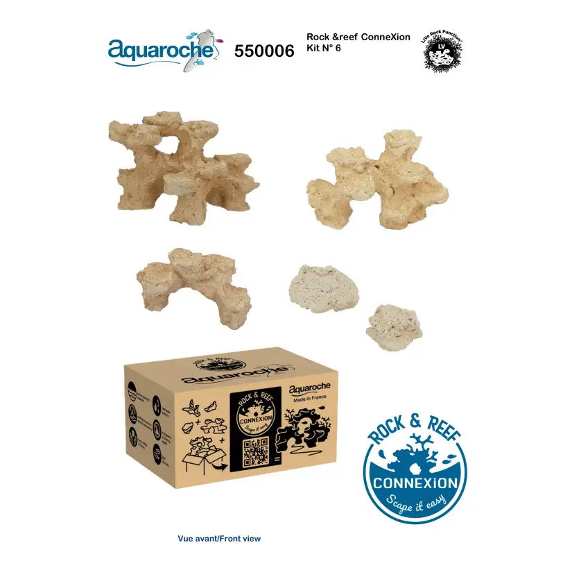 El kit 6 de Rock&Reef ConneXion es una forma divertida de crear la decoración de su propio acuario. Cada kit se compone de 3 módulos interconectables , 1 piedra redonda y 1 piedra plana que permiten crear una pequeña decoración para un nanoacuario . ¡Simplemente agregue un kit adicional para ampliar la decoración!