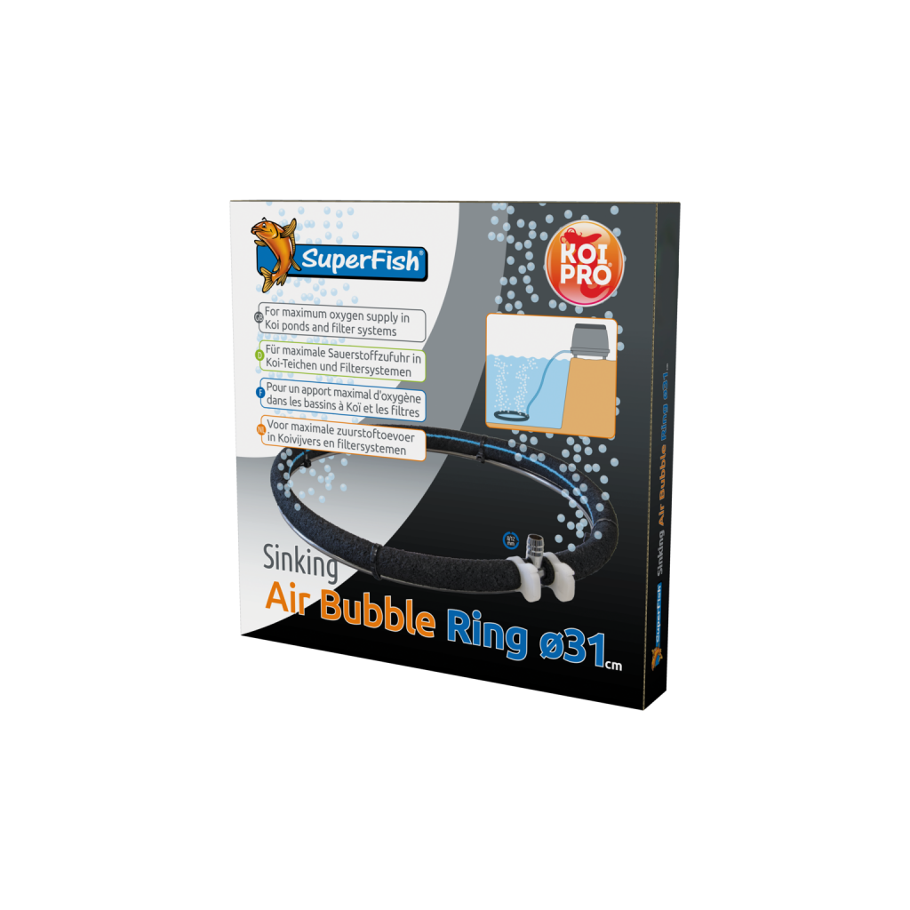 Con su gran diámetro de 31 cm , el anillo de burbujas de aire sumergible permite una amplia difusión de burbujas finas por toda su superficie. Gracias a su tubo poroso, el aire inyectado se distribuye perfectamente, lo que mejora la circulación del agua y optimiza el intercambio de gases. Este accesorio es ideal para estanques con alta carga biológica , como los que contienen carpas koi o peces grandes, donde el suministro de oxígeno debe ser constante y eficiente.