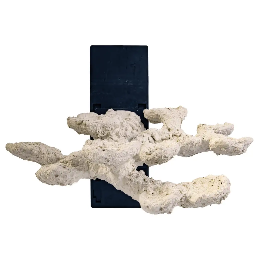 Fabricada en cerámica de alta calidad , esta roca suspendida reproduce fielmente la apariencia de una piedra viva. Su superficie texturizada es ideal para la fijación de corales , a la vez que promueve la colonización de bacterias beneficiosas. Este material inerte no libera sustancias al agua, lo que lo hace perfectamente compatible con los ecosistemas arrecifales más exigentes.