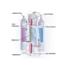 Filtro antisilicatos con capacidad de 500 ml. Este filtro está diseñado para eliminar los silicatos y otros componentes del agua que no se pueden eliminar al 100 % mediante ósmosis inversa. Se coloca a la salida de la ósmosis.