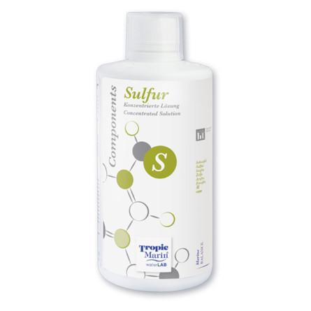 El azufre es un macronutriente presente de forma natural en el agua de mar a un nivel de 900 mg/l. En forma de sulfato, participa directamente en la formación de aminoácidos azufrados y en numerosos procesos enzimáticos. La falta de azufre puede debilitar el crecimiento y el metabolismo de los corales. Con Tropic Marin Components Sulfur, dispone de una solución segura y eficaz para mantener sus parámetros estables y cercanos a los valores naturales del océano.