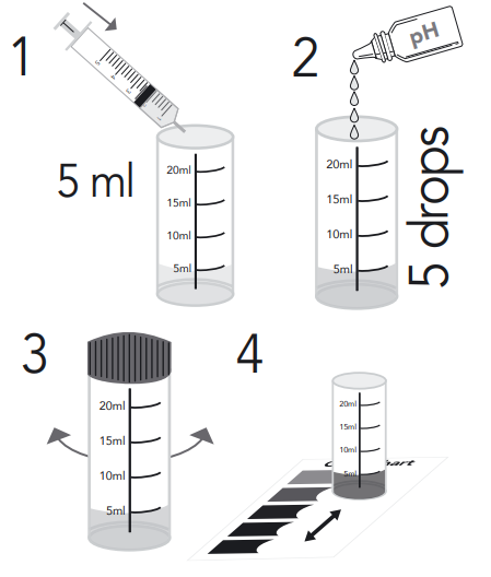 La lecture du résultat se fait en posant l’éprouvette sur l’échelle colorée fournie, puis en regardant directement par le dessus. Pour obtenir une interprétation plus juste, il vaut mieux observer la couleur sous une lumière indirecte et éviter le soleil direct, qui peut fausser la perception des nuances. La teinte de l’échantillon est ensuite comparée aux couleurs du nuancier, et la plus proche indique la valeur correspondante. En pratique, il arrive souvent que la couleur tombe entre deux repères. Dans ce cas, une estimation intermédiaire permet une lecture plus réaliste. Cette méthode visuelle reste simple à comprendre tout en donnant une mesure exploitable pour suivre le pH dans le temps.