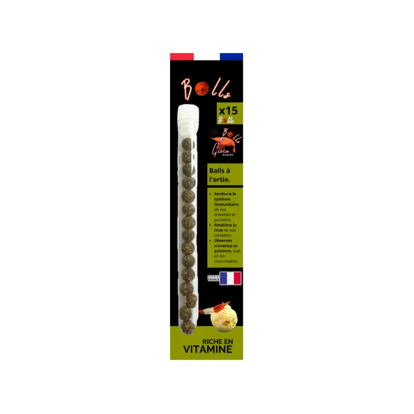 L'aliment Gioia Balls aux orties est un complément alimentaire pour invertébrés et poissons. Ce sont des boule de nourriture, ultra nourrissante, confectionnée à partir d'ingrédients de qualité et ultra protéinés. (15 boules / 9g)