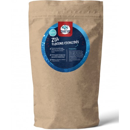 Flocons "Cichlidés" de qualité premium conditionnés en poche refermable de 5 litres pour une meilleure conservation.