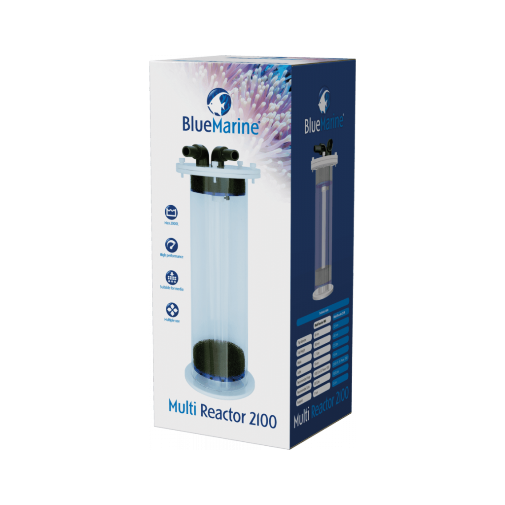 Blue Marine Multi Reactor 2100 idealan je reaktor za sve akvariste koji žele svom akvariju do 2100 litara ponuditi uistinu učinkovitu i prilagodljivu filtraciju. Dizajniran za korištenje širokog raspona filter medija - smola, ugljika, antifosfata, biomedija - povećava učinkovitost vašeg postojećeg sustava filtracije. Zahvaljujući velikodušnom volumenu od 3,5 litara i priloženoj finoj pjeni, podnosi i fine granule i veće medije. Lako se spaja na namjensku pumpu ili na vaš postojeći krug, a uklonjivi poklopac olakšava održavanje .