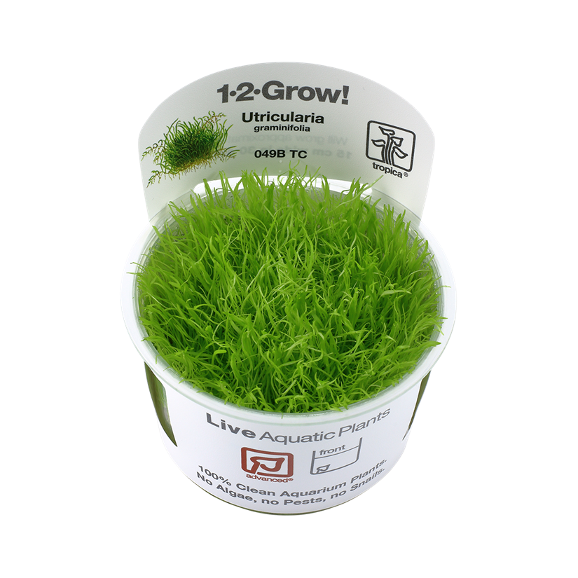 Utricularia graminifolia iz Tropica pomalo je NLO među akvarijskim biljkama. Sa svojim minijaturnim izgledom trave i iznenađujućim svojstvima mesoždera, ova in vitro biljka izaziva senzaciju. Formira lijep, gust, svijetlozelen tepih , sav u finoći, koji oblači pod akvarija zadivljujućom prirodnošću. Osim svog ultra-dekorativnog izgleda, hrani se mikroorganizmima zahvaljujući svojim malim nevidljivim kožicama , pravi plus u dobro izbalansiranim spremnicima. Voli svjetlost, uspijeva u mekoj vodi i preferira suhu sadnju da se dobro ukorijeni. Uz dobar CO2 sustav i malo strpljenja, postaje vizualni adut broj jedan u vašem aquascapeu.