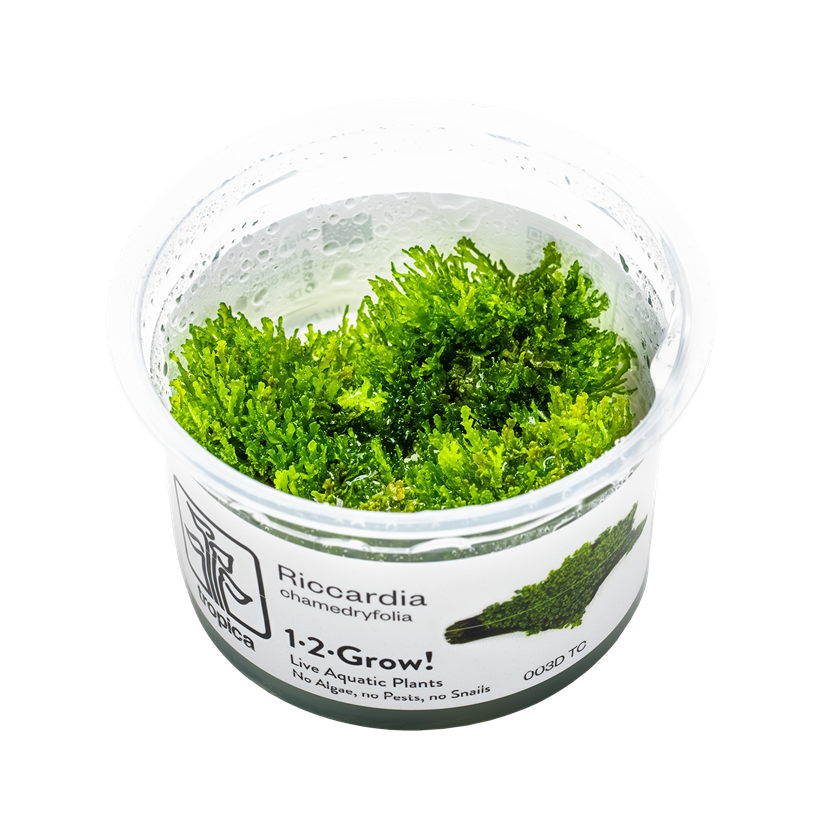 Riccardia chamedryfolia , također nazvana "Mini Pellia", malo je čudo za ljubitelje aquascapinga. Ovdje u in vitro verziji koju nudi Tropica , ova jetrena mahovina ističe se svojom gustom teksturom poput koralja koja svakom akvariju donosi dašak sofisticirane prirodnosti. Idealan za ukrašavanje korijenja, kamenja ili zasjenjenih dijelova dekoracije, oblikuje prilično kompaktne zelene jastuke . Njegov spori rast čini ga lakim za održavanje , savršeno za one koji žele stil, a da ne troše vikende na orezivanje. Iako je tolerantan, uspijeva uz dobro osvjetljenje i malo povećanje CO2. Vrijedan saveznik za strukturiranje profinjenog i organskog vodenog dekora.