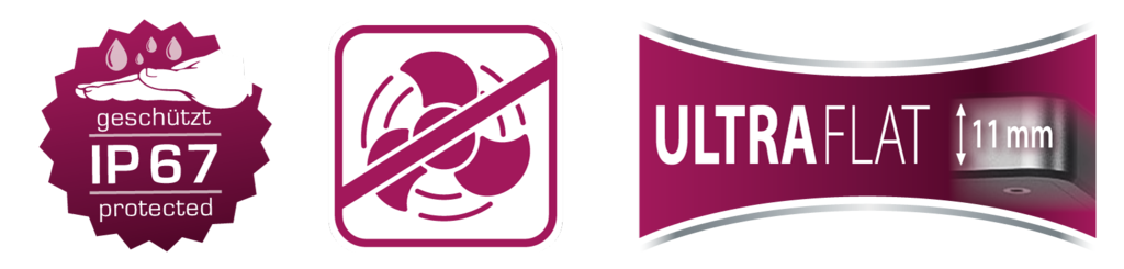 Sunbeam 60 funziona con un'alimentazione sicura a 20 V da un trasformatore esterno. Il suo grado di protezione IP67 garantisce un'eccellente resistenza all'umidità e agli spruzzi d'acqua. Per le installazioni sospese, è disponibile il sistema di sospensione opzionale Aquafit con cavo d'acciaio.