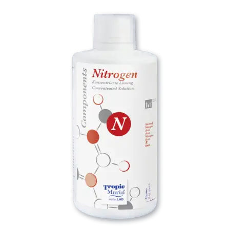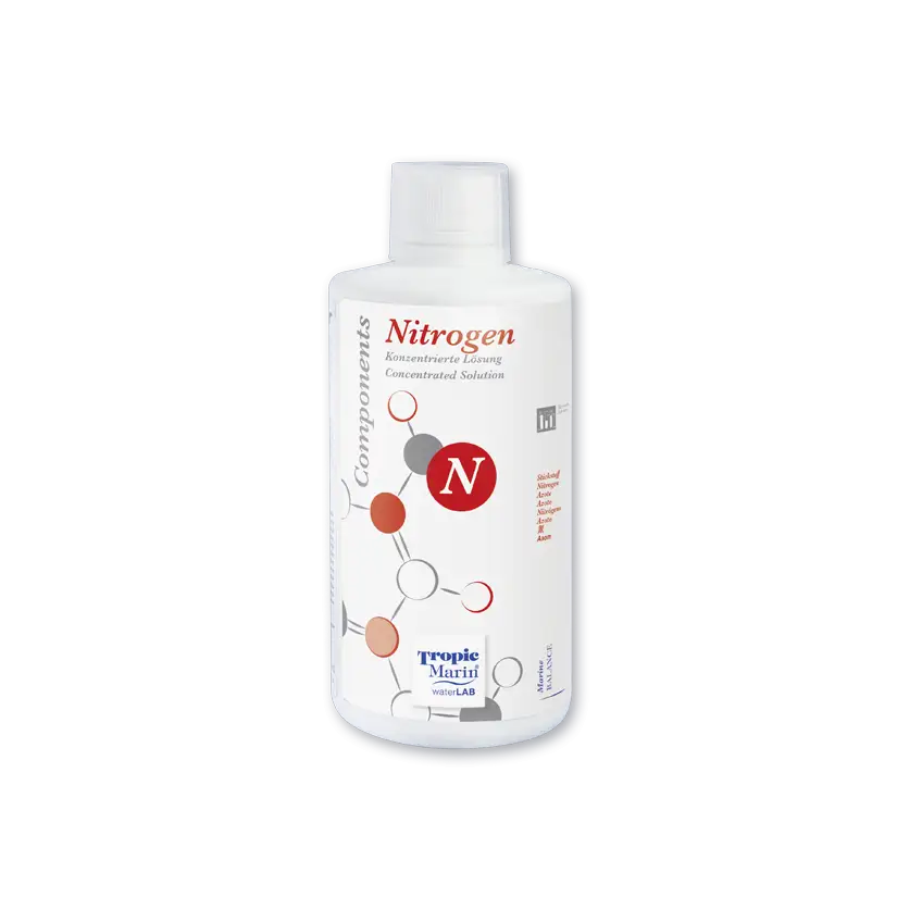 Un acquario scintillante grazie ad un apporto bilanciato di azoto! Tropic Marin Components Nitrogen è una soluzione concentrata studiata per correggere le carenze di azoto negli acquari di barriera. L'azoto è un macronutriente fondamentale per lo sviluppo dei coralli , in quanto favorisce la crescita di alghe simbiotiche che forniscono loro energia e una colorazione intensa. Senza un apporto sufficiente, i coralli perdono la loro lucentezza e la loro crescita rallenta. Con questo integratore purificato e stabilizzato è possibile regolare con precisione il livello di azoto per un ecosistema marino dinamico e sano.