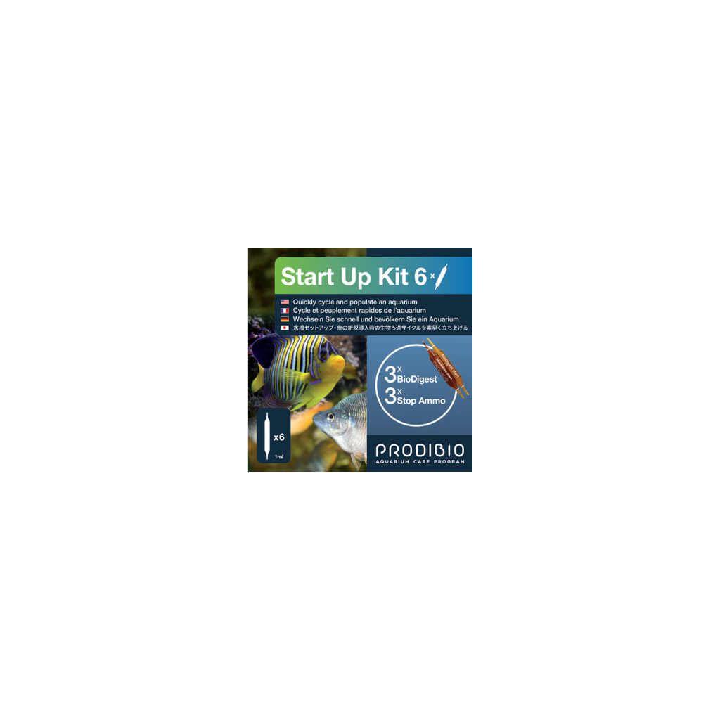 De PRODIBIO Start Up 6-ampullenverpakking is geschikt voor aquariums van 120 tot 180 liter . De verpakking bevat 3 ampullen BioDigest Start en 3 ampullen Stop Ammo Start. Deze verpakking is ontworpen om de juiste hoeveelheid product voor dit aquariumvolume te leveren, zonder schattingen of ingewikkelde berekeningen.
