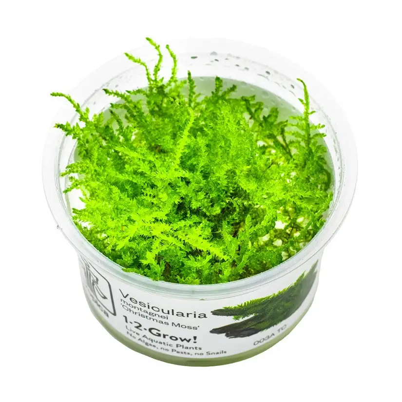 Vesicularia montagnei 'Christmas Moss' , ook wel Kerstmos genoemd, is een watermos dat erg populair is in aquaria. Door het dichte, vertakte blad lijkt de plant op een kleine spar, ideaal als decoratie van stenen en wortels in aquaria . Het is makkelijk te bevestigen en groeit langzaam. Het vormt een natuurlijke mat die ideaal is voor garnalen en kleine vissen. Om de groei te optimaliseren, is een goede verlichting aan te raden.