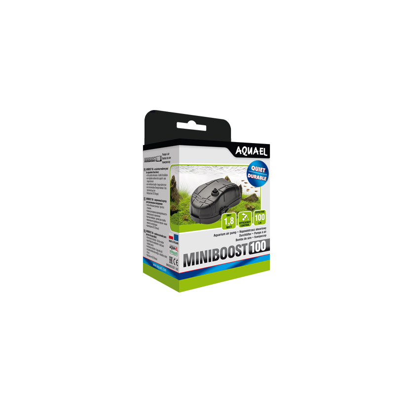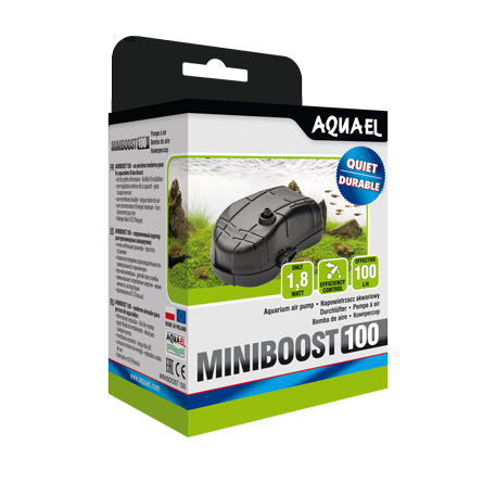 Met een energieverbruik van slechts 1,8 W onderscheidt de Aquael MiniBoost 100 zich door zijn economische efficiëntie. Het ontwerp maakt continu gebruik mogelijk zonder dat uw energierekening stijgt. Bovendien is het apparaat duurzamer dankzij het sterke membraan. Deze beluchter is perfect voor kleine tot middelgrote aquaria en de ideale keuze voor liefhebbers die op zoek zijn naar betrouwbare en duurzame apparatuur.