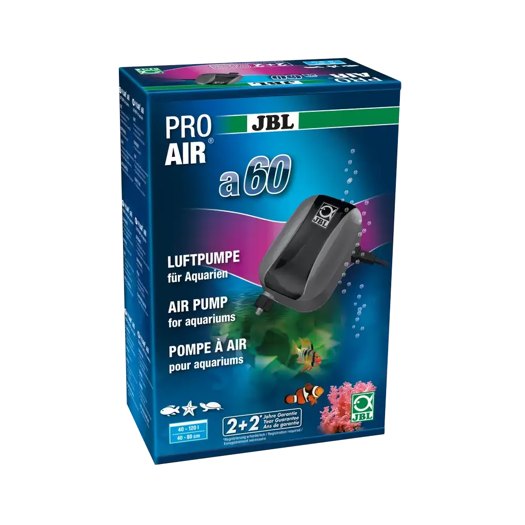 De JBL ProAir a60 is een compacte luchtpomp die is ontworpen om kleine aquariums op een zachte en constante manier van zuurstof te voorzien. Met een debiet van 60 l/u en een laag stroomverbruik van slechts 2,5 W is het een economische en efficiënte oplossing voor het behoud van een gezond milieu. De pomp wordt geleverd als een complete, aansluitklare set , inclusief slang, diffuser en terugslagklep voor directe installatie. Het grootste voordeel is de zeer stille werking , die wordt gegarandeerd door een geluidsdempende behuizing, een versterkte constructie en trillingsdempende voetjes . Perfect als reserveonderdeel , want hij is snel onopvallend en doet zijn werk uitstekend.