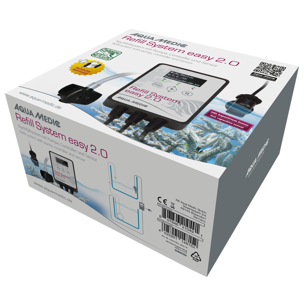 Of uw aquarium nu een standaardmodel of een technisch aquarium is, het Refill System easy 2.0 past zich aan elke configuratie aan dankzij de meegeleverde universele houder en de eenvoudige aansluitingen op alle kabels . Binnen enkele minuten is de set klaar voor gebruik. Het systeem werkt op laagspanning (12 V) voor maximale veiligheid en de transformator wordt meegeleverd (100-240 V / 50-60 Hz).
