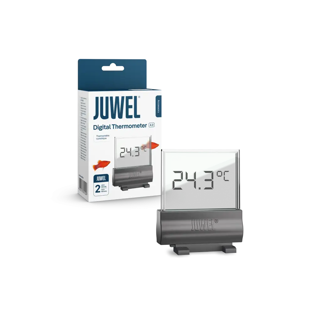 De JUWEL digitale thermometer 4.0 is het discrete maar onmisbare hulpmiddel om de temperatuur van uw aquarium nauwkeurig in de gaten te houden. Dankzij het grote, gemakkelijk afleesbare LCD-scherm kunt u de temperatuur in één oogopslag controleren, zonder uw ogen samen te knijpen of de tank te openen. De nauwkeurige sensor, met een nauwkeurigheid van ±0,5 °C , zorgt voor betrouwbare controle tussen 0 en 40 °C, ideaal voor zowel zoet- als zoutwateraquaria. Het moderne ontwerp past naadloos bij JUWEL-aquaria en andere opstellingen. Eenvoudig te installeren, gemakkelijk te gebruiken en voorzien van een schakelaar voor de °C/°F-eenheid met één druk op de knop, biedt de thermometer handige en continue monitoring om stabiele omstandigheden te behouden.