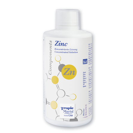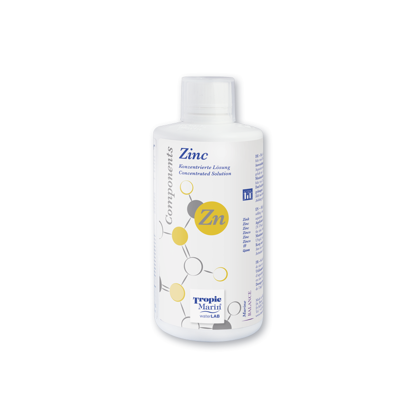 Zink speelt een fundamentele rol bij de activering van enzymen die verantwoordelijk zijn voor de absorptie van koolstof en fosfaat. In aquaria is de natuurlijke concentratie extreem laag (2-5 µg/L), waardoor aanvullende toediening noodzakelijk is. Tropic Marin Components helpt deze tekorten te compenseren en zorgt voor een betere opname van essentiële macronutriënten.