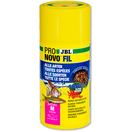 Pronovo Fil 100ml van JBL is een ideaal voedingssupplement voor zoetwatervissen. Rode muggenlarven zijn zeer voedzaam en vormen in het wild de voedselbasis voor veel vissoorten. Dit voer is een ideaal alternatief voor levend of diepvriesvoer: door het droogproces blijven de voedingsstoffen behouden.