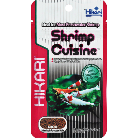 Hikari Shrimp Cuisine is verrijkt met spirulina, algen en andere essentiële voedingsstoffen om aan de specifieke behoeften van garnalen te voldoen. Deze componenten stimuleren hun eetlust, ondersteunen hun immuunsysteem en bevorderen een goede lichamelijke conditie, zelfs in een soms stressvolle omgeving zoals een aquarium.