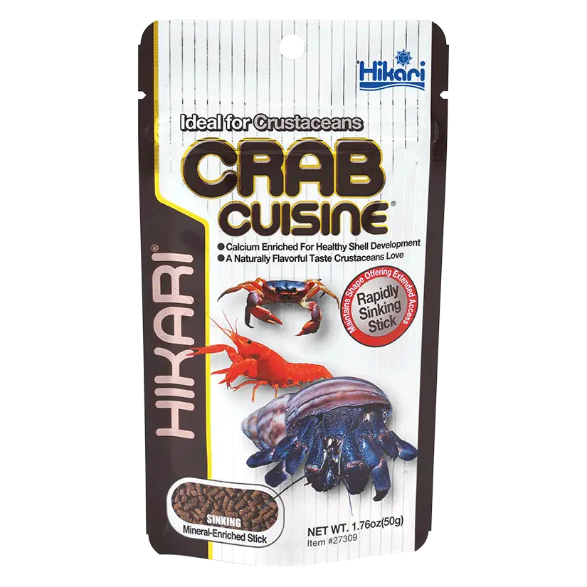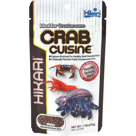 Hikari Crab Cuisine 50g is speciaal samengesteld om te voldoen aan de behoeften van zoet- en zeewaterschaaldieren , zoals krabben, rivierkreeften, heremietkreeften en kreeften . Deze zinkende hengels , rijk aan calcium en eiwitten, versterken hun exoskelet voor een betere bescherming tegen roofdieren en ziekten. Ze zijn sterk en duurzaam en zorgen ervoor dat schaaldieren ze met een gerust hart naar hun schuilplaats kunnen brengen voor consumptie, terwijl watervervuiling wordt vermeden.