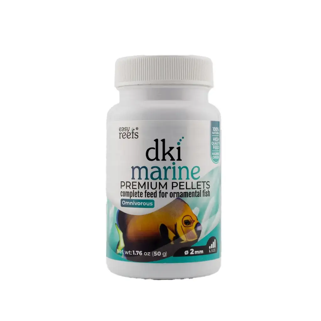 DKI Marine onderscheidt zich door de samenstelling die uitsluitend afkomstig is uit het mariene milieu . Schaaldieren, vissen en macro- en microalgen worden gecombineerd om het natuurlijke dieet van rifvissen zo goed mogelijk na te bootsen. De volledige afwezigheid van ingrediënten van het land helpt de spijsvertering in balans te houden en minimaliseert onnodig afval in het aquarium. Het resultaat: schoner water en gezonde vissen.