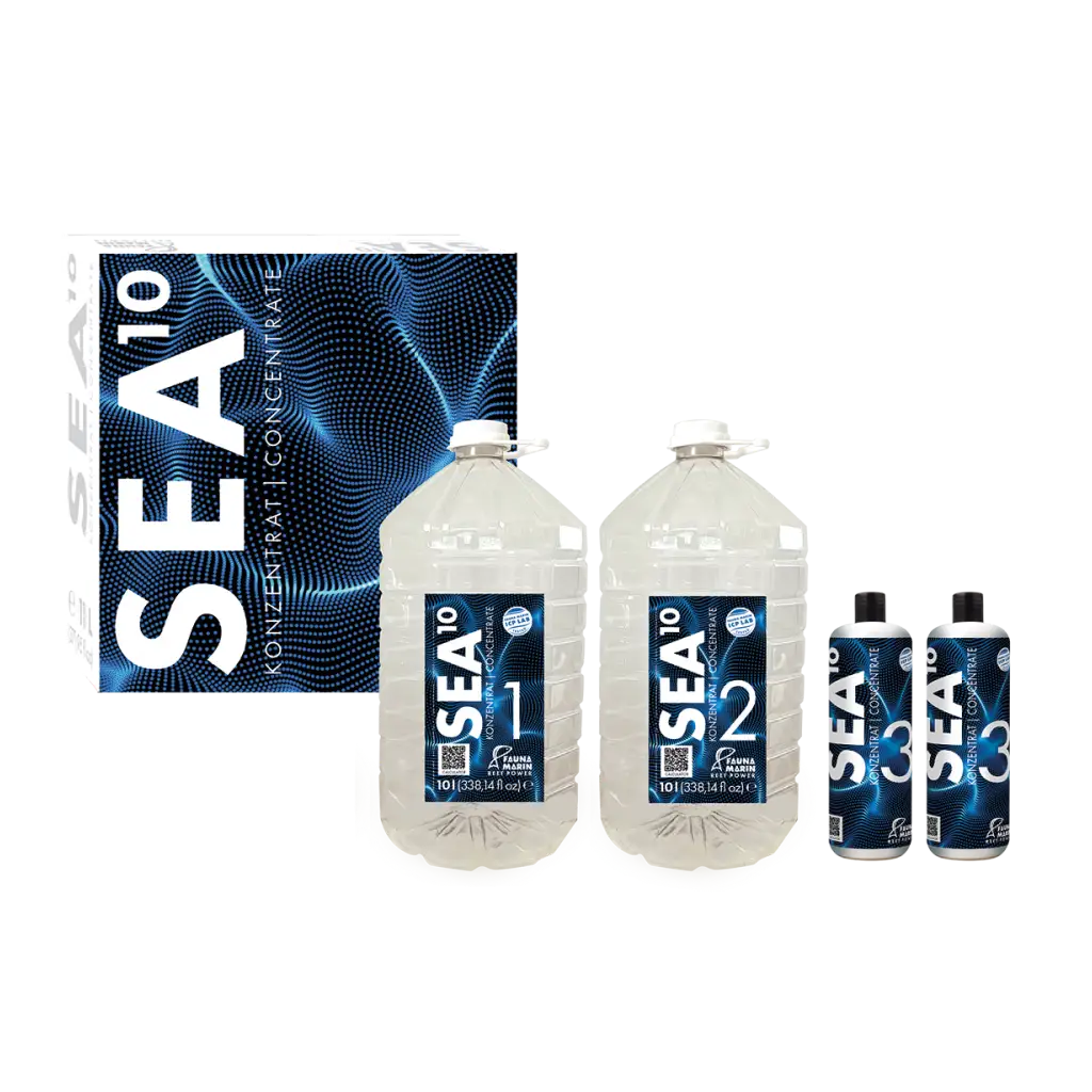 Fauna Marin SEA10 is de alles-in-één oplossing voor het creëren van kristalhelder, stabiel en perfect uitgebalanceerd zeewater . Door drie geconcentreerde oplossingen op basis van gezuiverde zouten te combineren, maakt dit pakket het eenvoudig om 200 liter zeewater te bereiden met een zoutgehalte van ongeveer 34 psu en een alkaliteit van ongeveer 8,5 °dKH . SEA10 is praktisch, duurzaam, ruimtebesparend en in het laboratorium getest en bespaart kostbare tijd bij elke waterverversing. Ideaal voor nieuwe installaties of het onderhoud van veeleisende rifaquaria. Dit systeem elimineert doseernauwkeurigheden en vermindert de impact op het milieu.