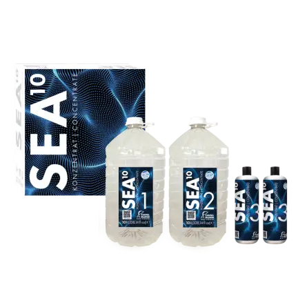 SEA10 is ongeveer tien keer geconcentreerder dan traditionele zeewatermengsels. Minder transportvolume, minder opslag, minder plastic. En dat alles met een aanzienlijk lagere milieu-impact . Het is een bijzonder populaire oplossing voor aquarianen die op zoek zijn naar een schoon, snel en eenvoudig te integreren systeem in hun onderhoudsroutine.