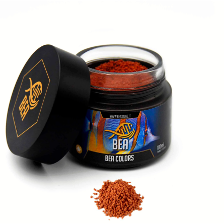 Apresentado em um frasco de vidro de 100ml , o BEA Colors consiste em grânulos de 1,3mm de diâmetro e 2-3mm de comprimento. Sua textura fluida permite uma distribuição uniforme na coluna d'água, ideal para alimentar diversas espécies, tanto as que vivem na superfície quanto as que vivem em profundidades intermediárias.