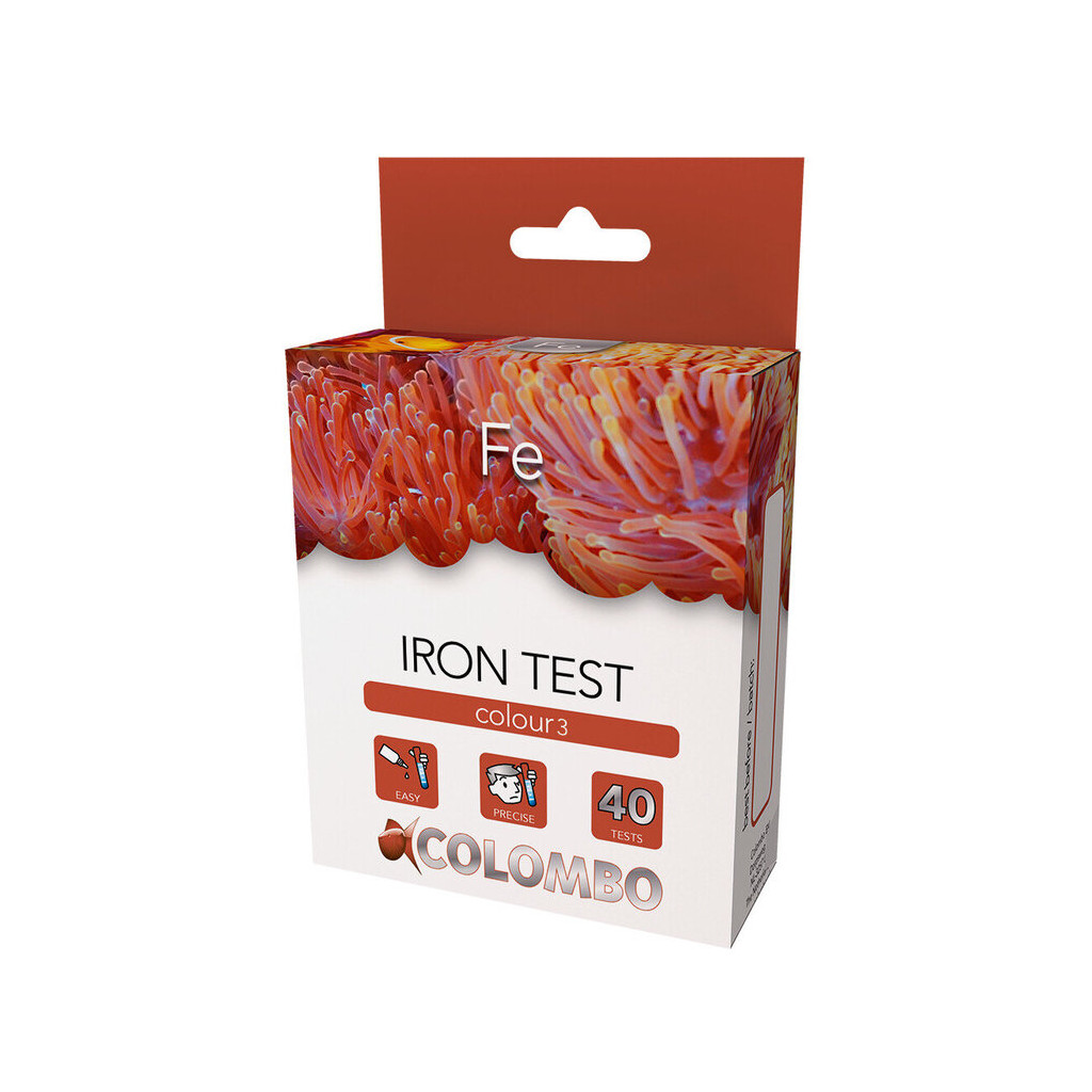 O teste COLOMBO Fe-Iron Colour 3 é um teste de gotas projetado para medir com precisão os níveis de ferro na água do mar . Fácil de usar, permite monitorar esse parâmetro sensível com uma leitura clara graças à sua escala de cores inclusa . Este kit completo contém os tubos de ensaio, acessórios e reagentes necessários para realizar os testes de forma simples, sem equipamentos complicados. Sua faixa de medição de 0,05 a 0,75 mg/l o torna particularmente prático para monitorar variações de ferro em aquários marinhos. Com conteúdo suficiente para 40 testes , oferece um excelente equilíbrio entre precisão, simplicidade e durabilidade. É uma escolha confiável para manter um monitoramento regular e preciso da qualidade da água.