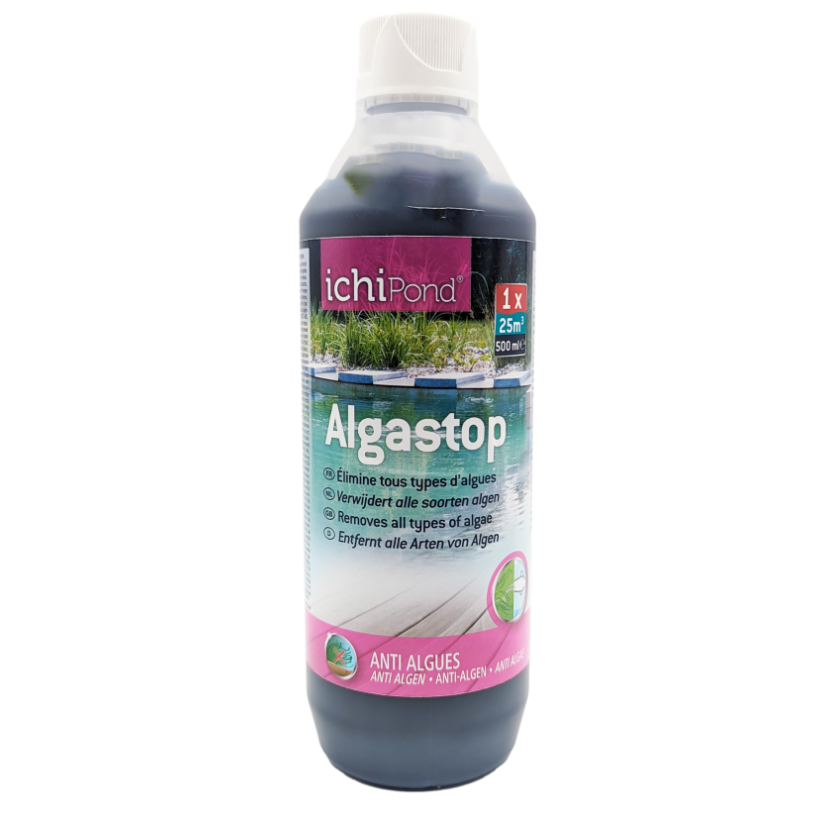 As algas podem ser um verdadeiro incômodo para os nossos lagos. Algastop não é apenas um produto de limpeza: é uma armadura contra estes intrusos. Porém, é bom lembrar que se o Algastop tratar o sintoma, descobrir a causa continua sendo essencial. Lembre-se de analisar a água para medir dureza, nitratos e fosfatos.